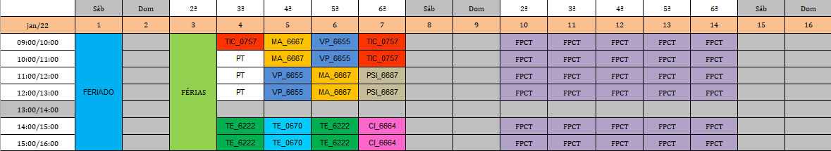 Cursos de Aprendizagem / Técnico de Informática - Sistemas / Cronograma janeiro